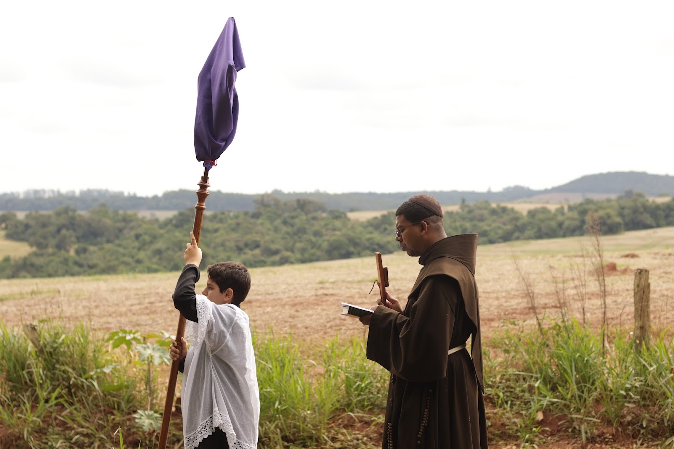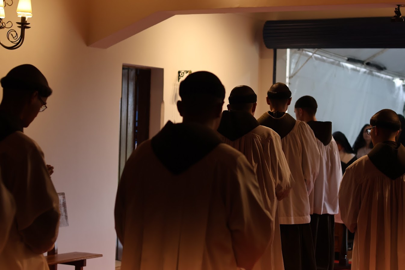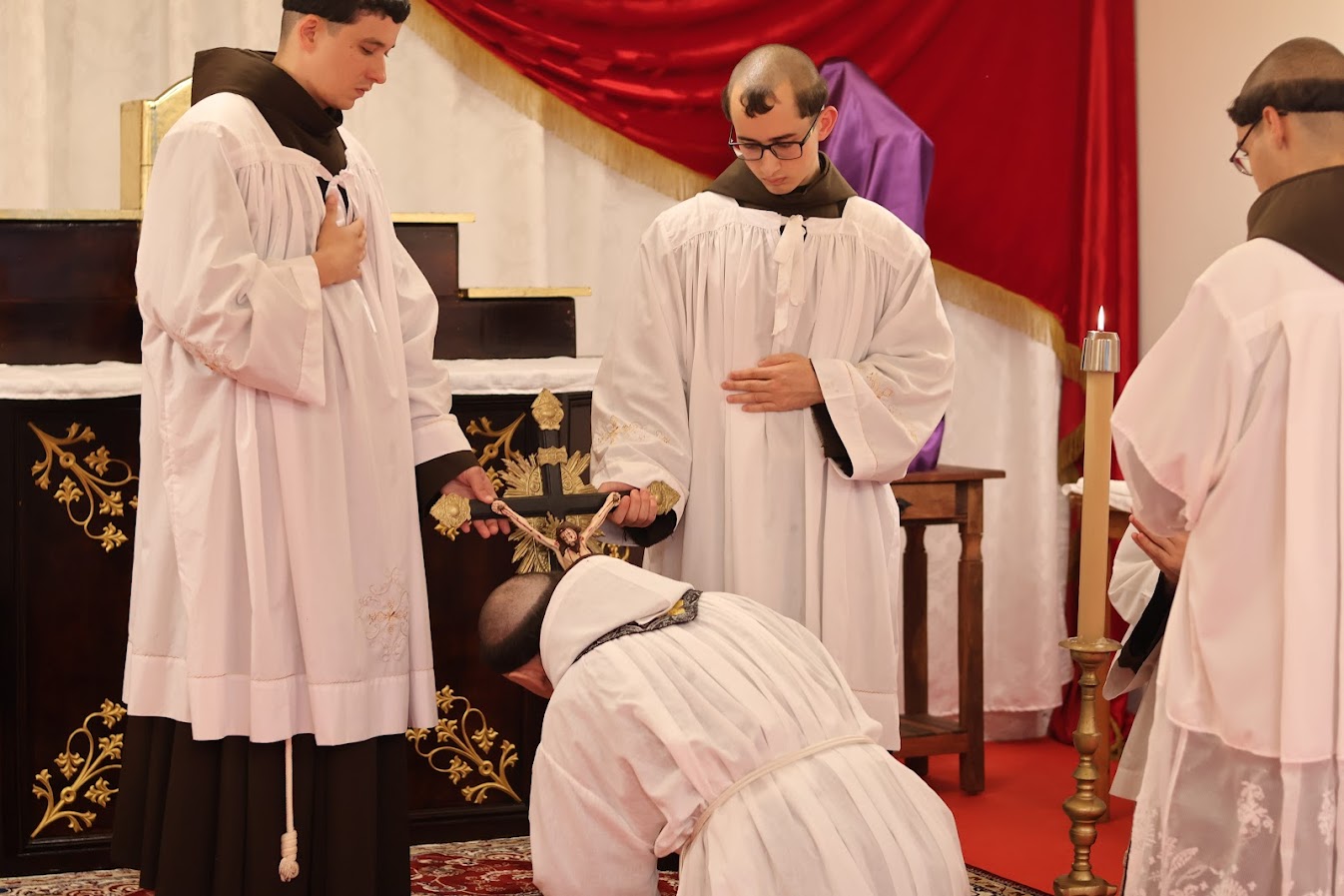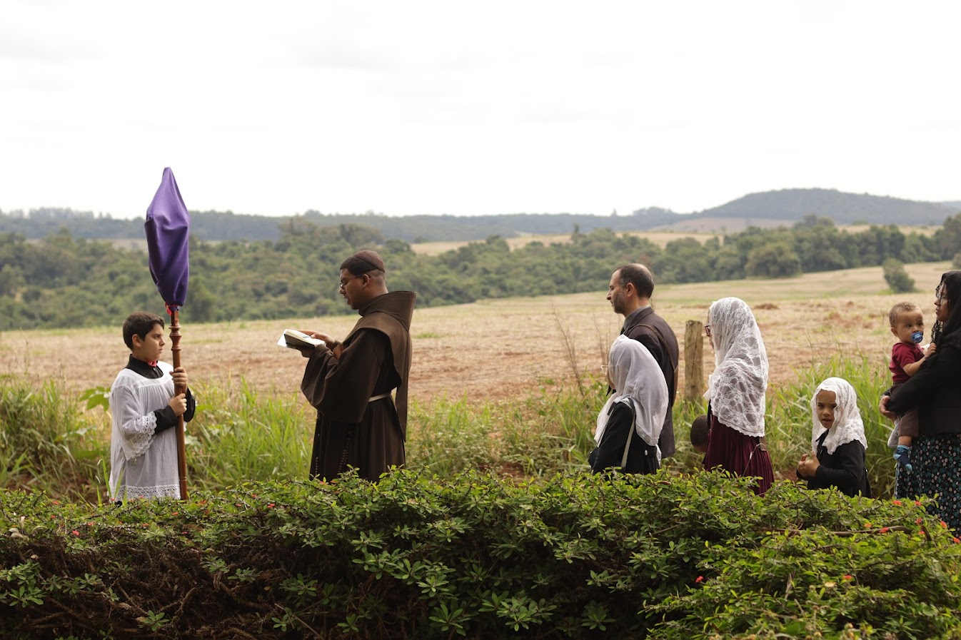 Por volta das 14 horas, teve início a piedosa Via Sacra, percorrida com fervorosa devoção pelos jardins e caminhos da propriedade conventual, sendo conduzida pelo irmão leigo, Frei Serafim Maria. Os fiéis acompanharam com edificação cada estação, meditando os augustos mistérios da nossa Redenção.