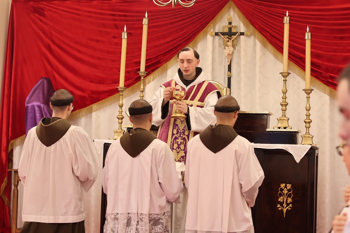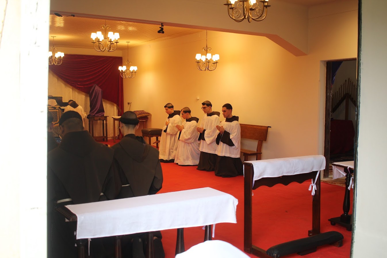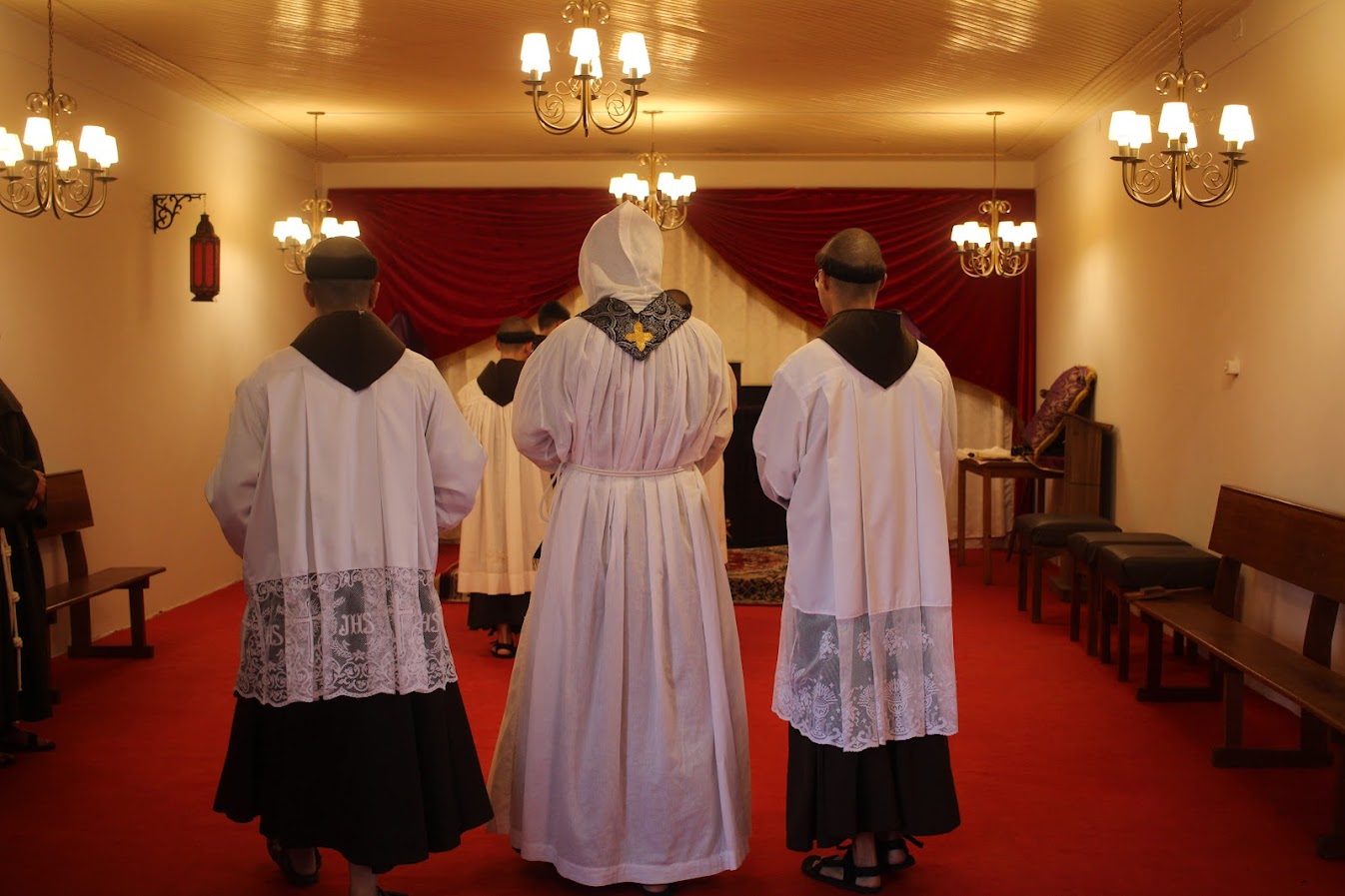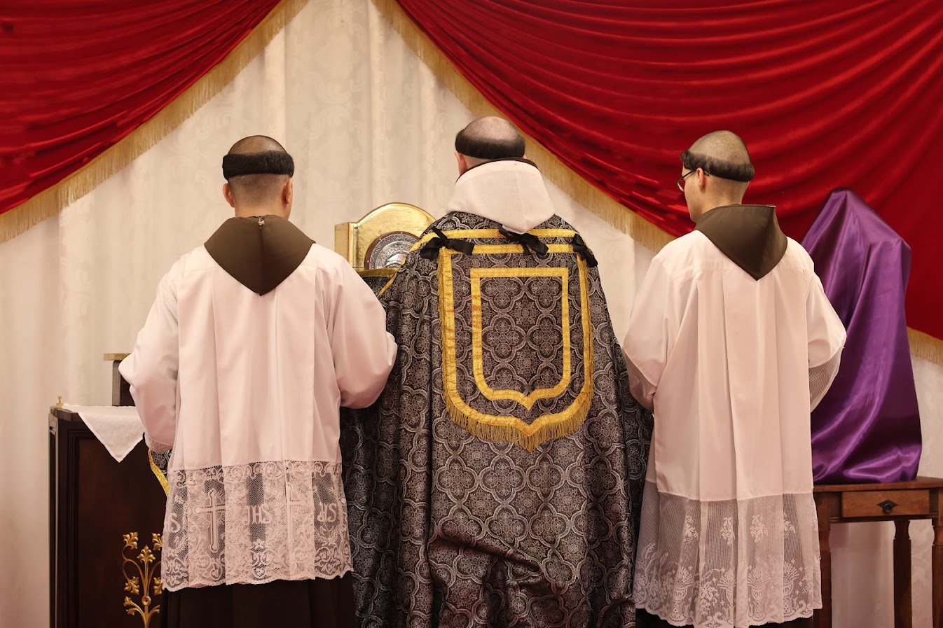 Por volta das 14 horas, teve início a piedosa Via Sacra, percorrida com fervorosa devoção pelos jardins e caminhos da propriedade conventual, sendo conduzida pelo irmão leigo, Frei Serafim Maria. Os fiéis acompanharam com edificação cada estação, meditando os augustos mistérios da nossa Redenção.