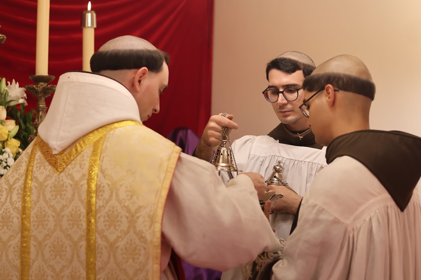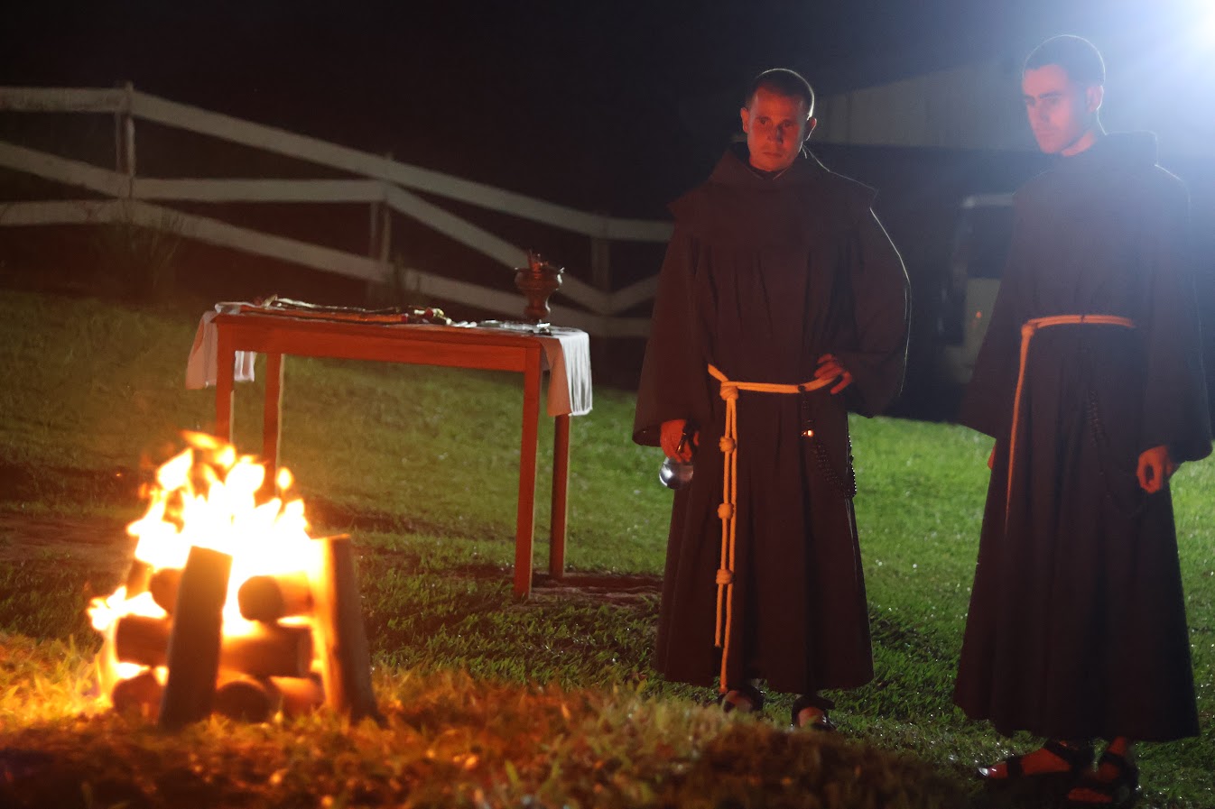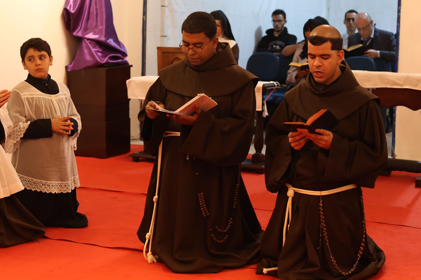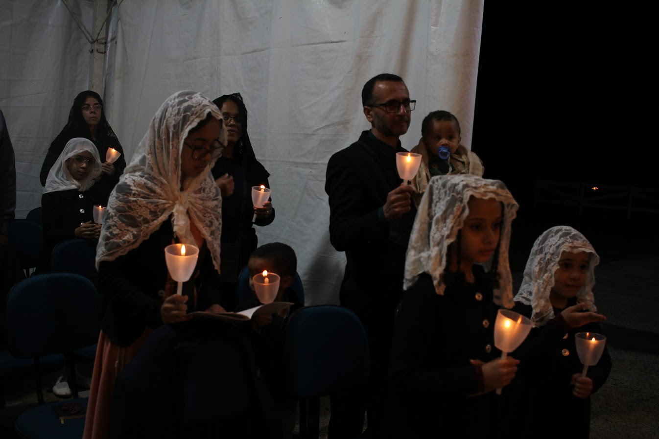 Em seguida, realizou-se a piedosa procissão rumo à Capela pública do Convento Seráfico, onde o celebrante, o Rev. Pe. Frei Boaventura de Nossa Senhora Sede da Sabedoria, entoou por três vezes o comovente e solene “Lumen Christi”, sendo cada vez respondido com fé e reverência por todo o povo: “Deo gratias”.
