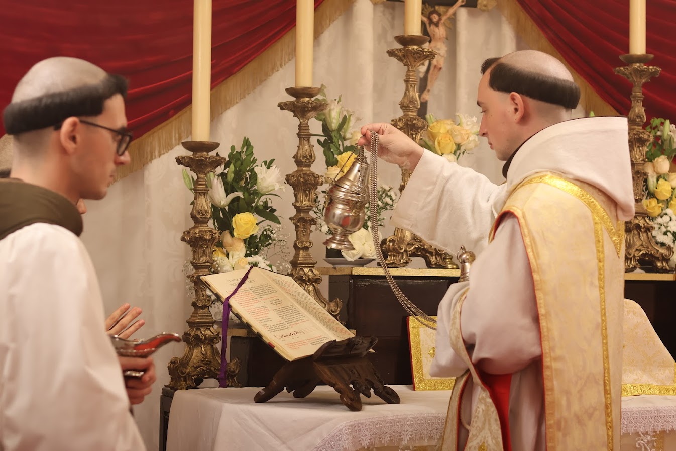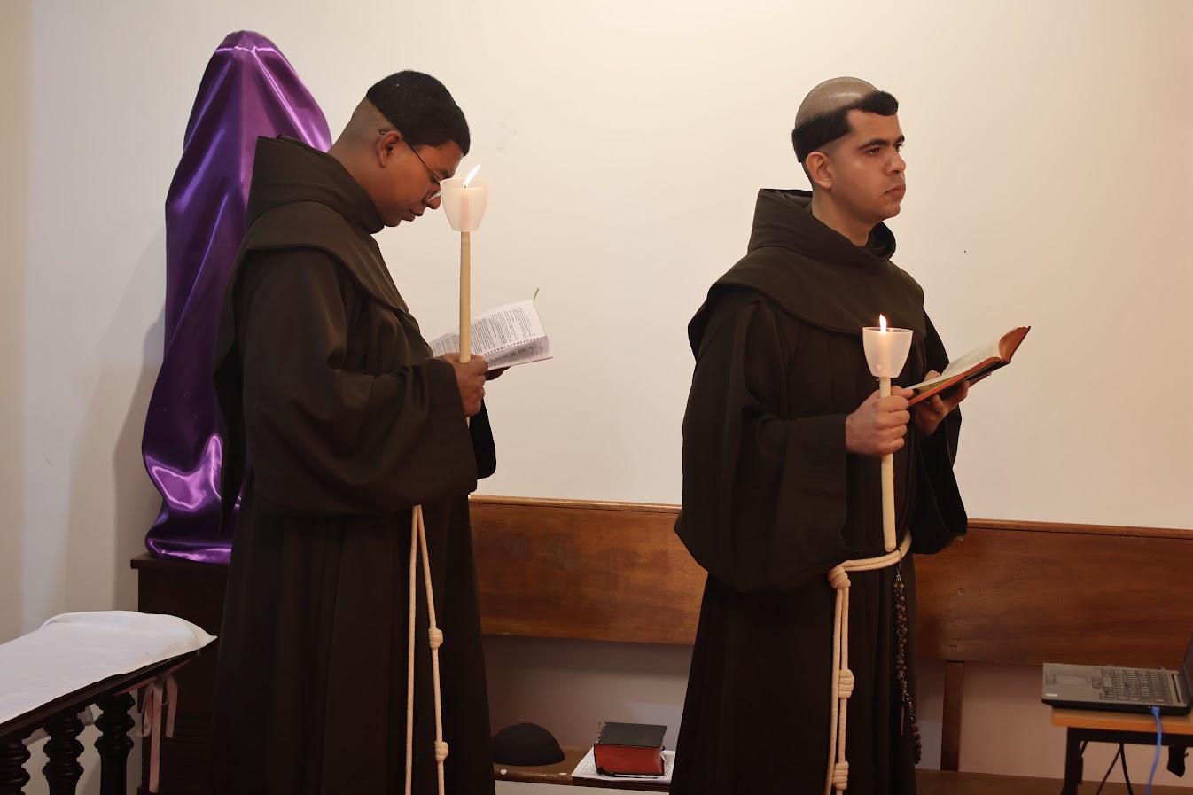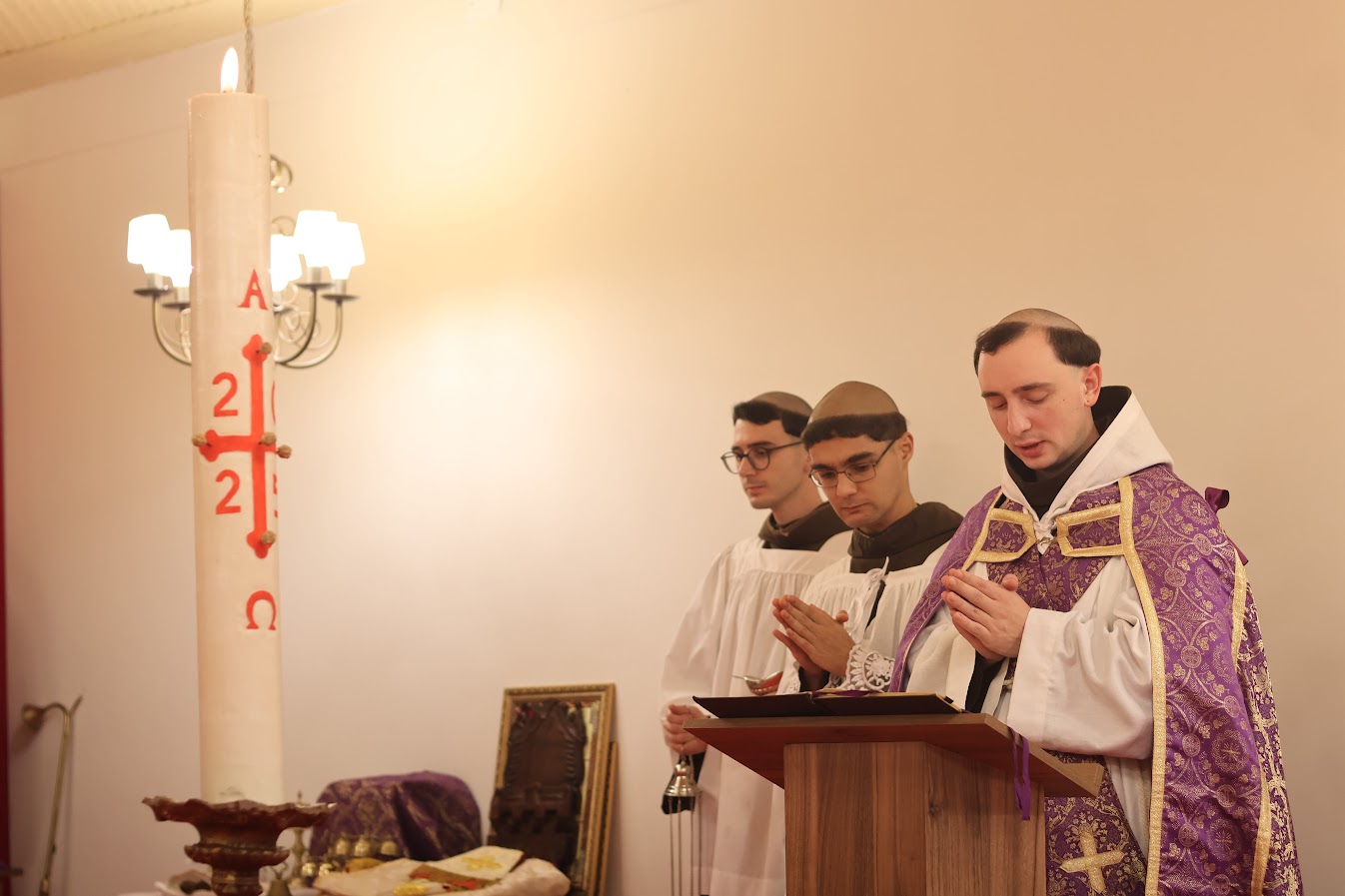 Em seguida, realizou-se a piedosa procissão rumo à Capela pública do Convento Seráfico, onde o celebrante, o Rev. Pe. Frei Boaventura de Nossa Senhora Sede da Sabedoria, entoou por três vezes o comovente e solene “Lumen Christi”, sendo cada vez respondido com fé e reverência por todo o povo: “Deo gratias”.