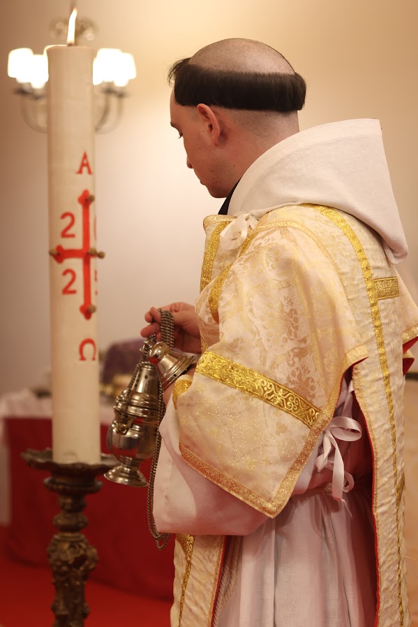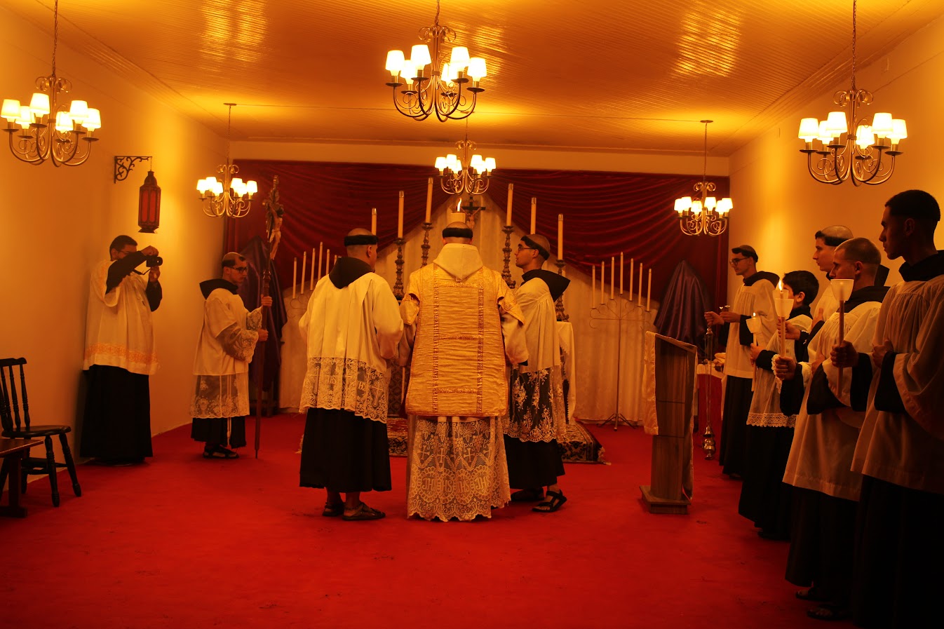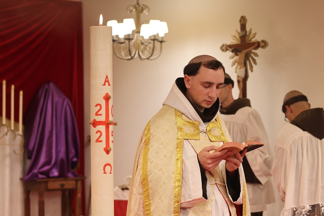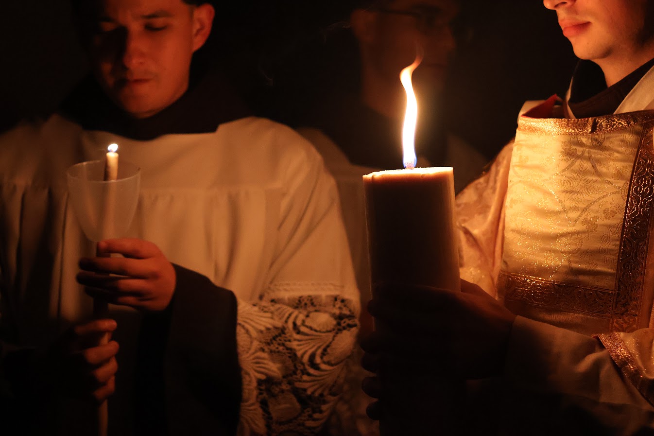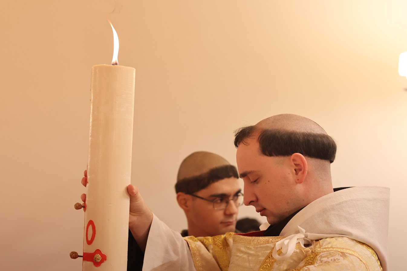 Caríssimos fiéis, com imensa alegria pascal, comunicamos que no último sábado, dia 19 de abril, pelas primeiras horas da manhã, foi cantado com piedade o último Ofício de Trevas deste Santo Tríduo. Já por volta das 23h, teve início, com toda solenidade litúrgica e devoção, a Augusta Vigília Pascal, com a tradicional bênção do fogo novo e do Círio Pascal.
