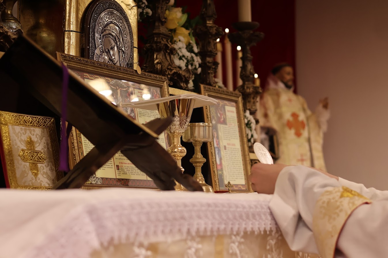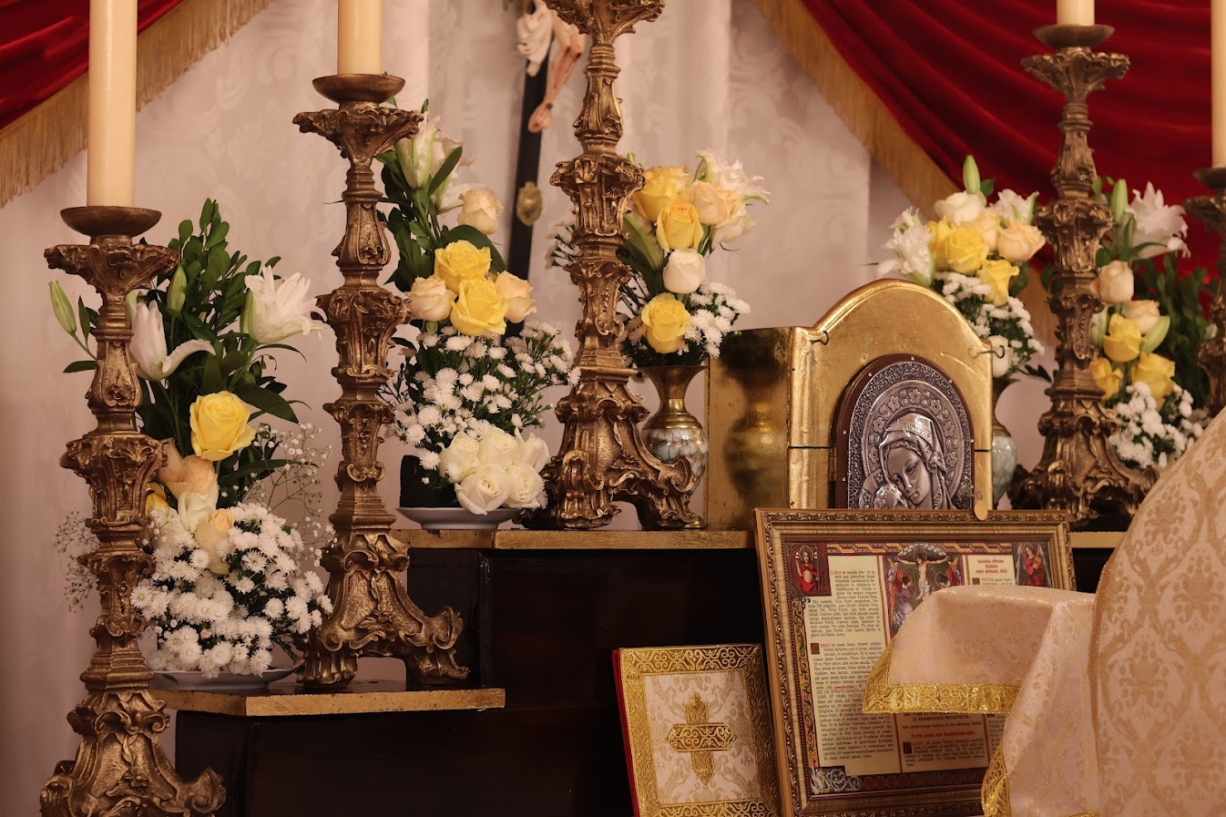 A cerimônia prosseguiu com a leitura das santas profecias e a renovação das promessas batismais. O altar e o santuário foram então ricamente adornados com flores, e os ornamentos roxos foram substituídos por brancos, em sinal da Ressurreição gloriosa do Senhor.