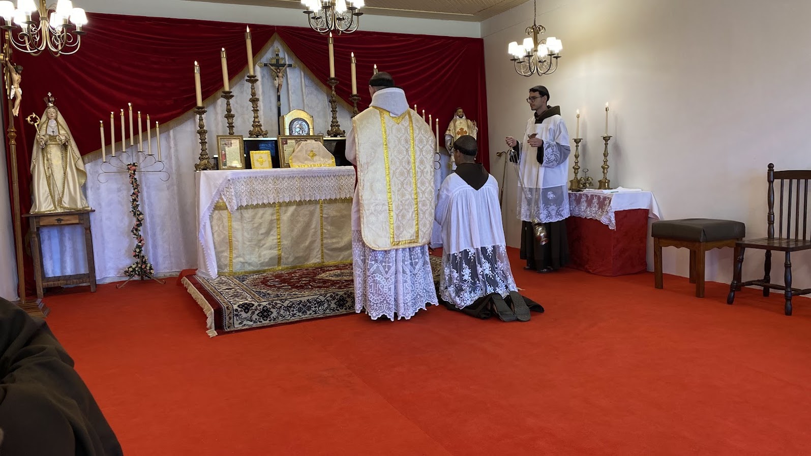 Caríssimos fiéis, no dia 1º de maio, quinta-feira, a Capela pública do Seminário Seráfico São Boaventura, em Itatinga/SP, foi honrada com a solene celebração da Festa de São José Operário, Castíssimo Esposo da Bem-Aventurada Sempre Virgem Maria e Padroeiro dos trabalhadores cristãos. A Santa Missa foi celebrada com grande recolhimento e piedade pelo Rev. Pe. Frei Boaventura de Nossa Senhora Sede da Sabedoria Robinson, O. F. M. Sub, contando com a digna assistência da comunidade religiosa e a edificante presença dos fiéis da Capela Nossa Senhora do Desterro.