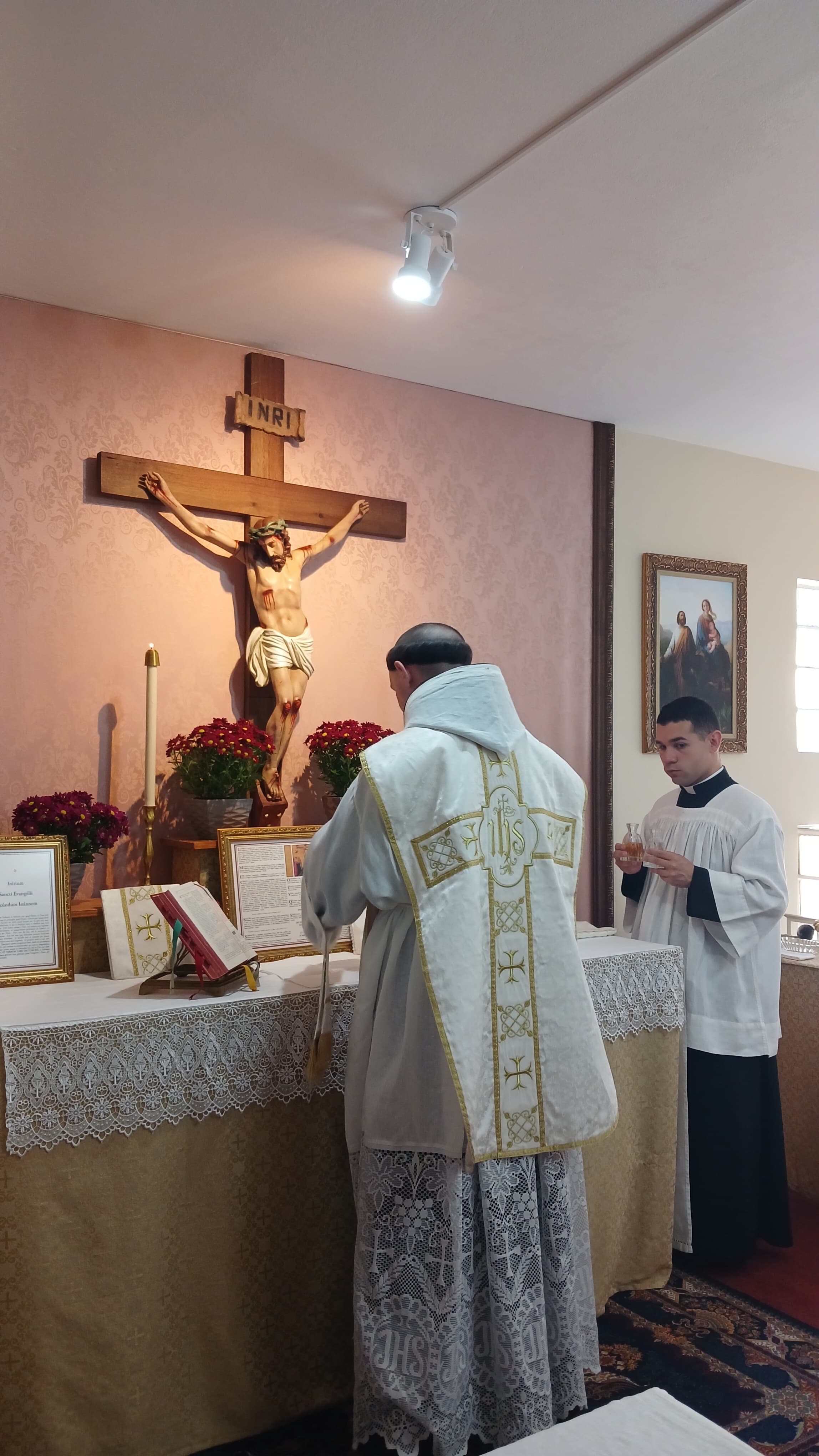 Após a celebração da Santa Missa dominical, os fiéis, movidos por filial gratidão e estima, surpreenderam o Rev. Padre com uma singela comemoração e a oferta de um precioso presente: um hissopo, acompanhado de uma carta em nome dos fiéis da Capela, expressando seu afeto, apreço e orações.
