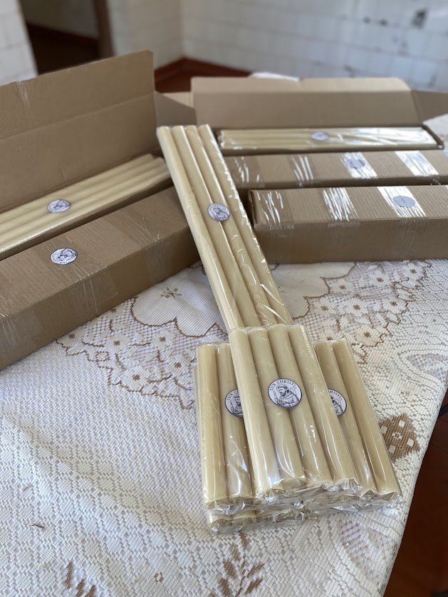 Caros fiéis, com alegria comunicamos o início da nossa produção de velas 100% cera de abelha, inaugurando a nossa loja LUX CHRISTI, um novo projeto destinado a auxiliar na manutenção de nossa comunidade no Brasil. As velas são produzidas artesanalmente, com dedicação e esmero por nossos religiosos, e têm como finalidade contribuir para o sustento do convento.