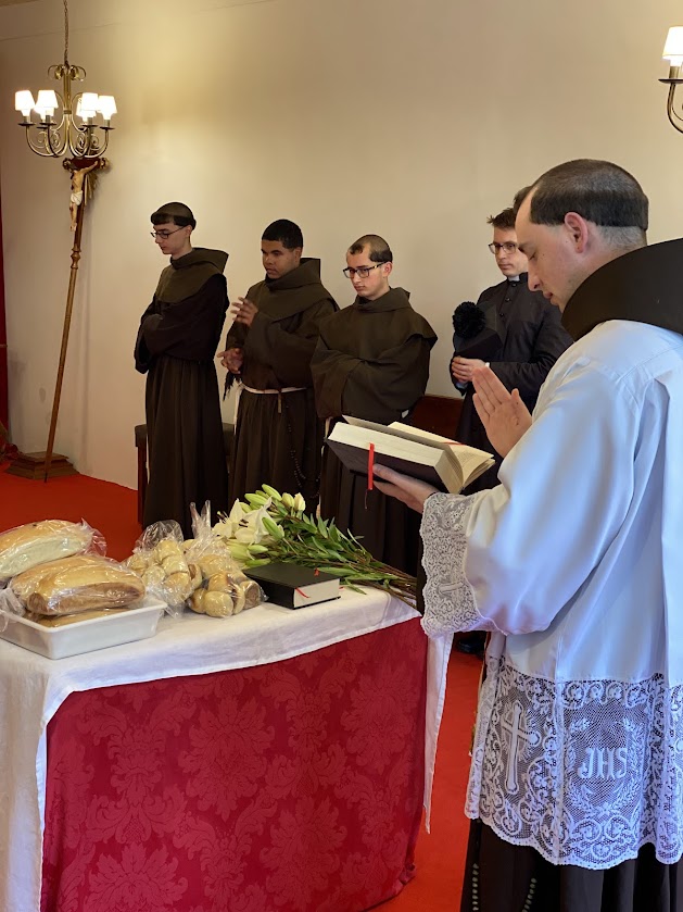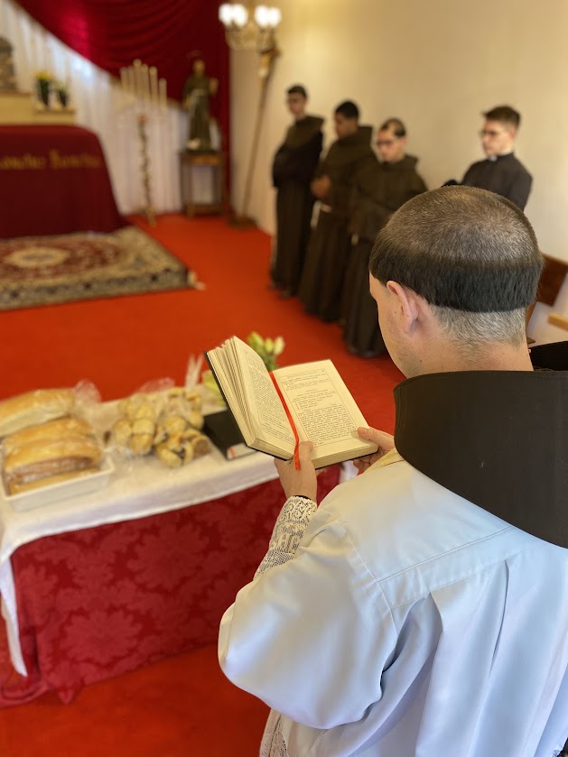 O Rev. Pe. Frei Boaventura abençoou os pães e os lírios, segundo a tradição antoniana, e em seguida distribuiu os lírios aos religiosos e seminaristas, encerrando com a bênção final.