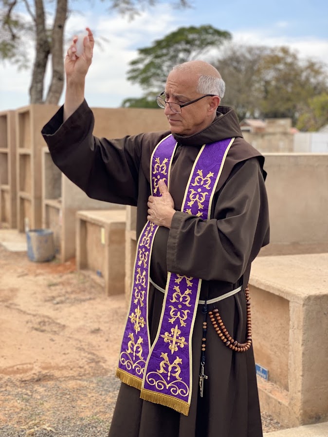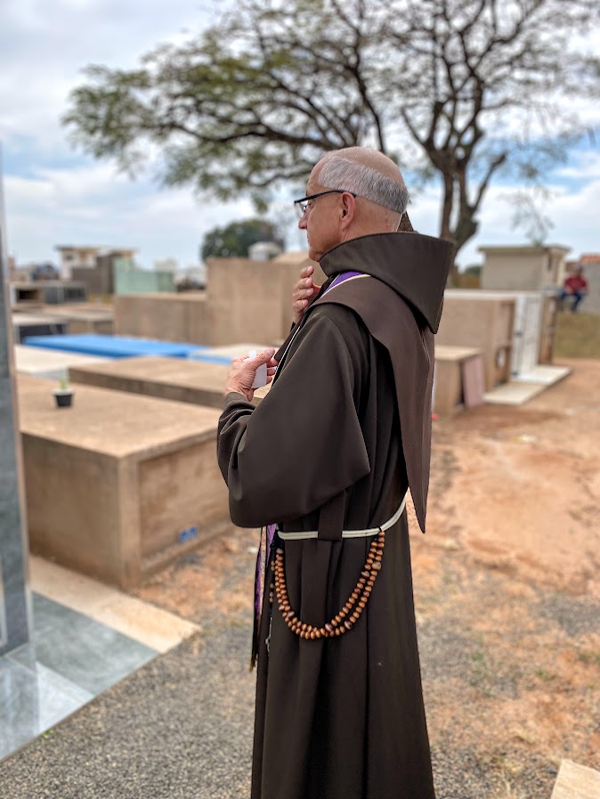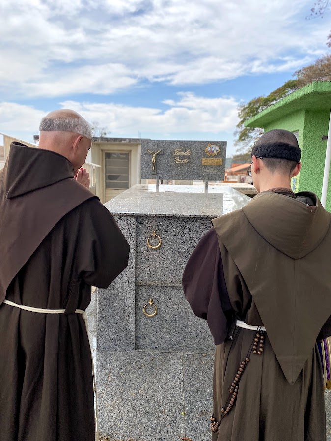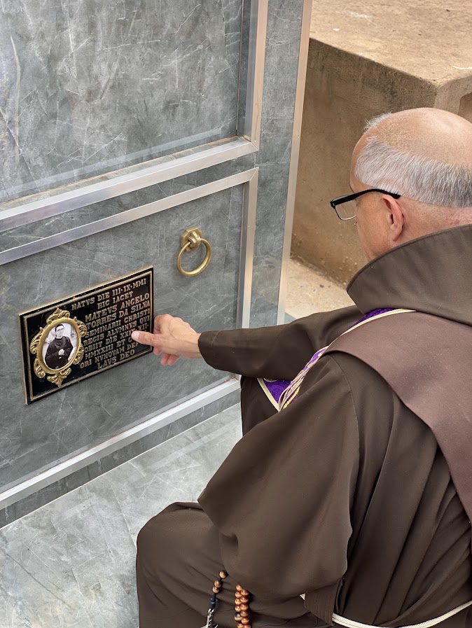 Na última terça-feira, dia 19, o Rev. Pe. Frei Francis Miller, O. F. M. Sub, nosso Superior Geral, visitou o jazigo perpétuo dos Frades Menores, no Cemitério Municipal da Saudade, em Itatinga-SP. Ali repousam os restos mortais de nosso caríssimo Frater Mateus Ângelo Torres da Silva, falecido em trágico acidente automobilístico em dezembro de 2023, quando saiu do Mosteiro das Irmãs Clarissas, em Bofete-SP, a caminho da cidade de Porangaba-SP, para protocolar documentos da Associação Irmãos de São Francisco.