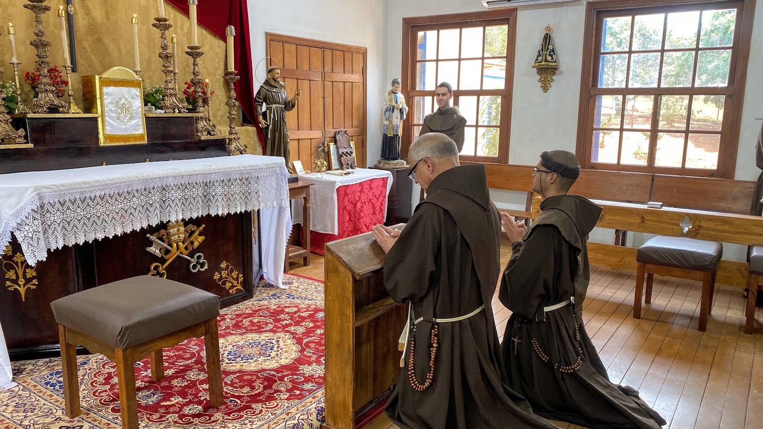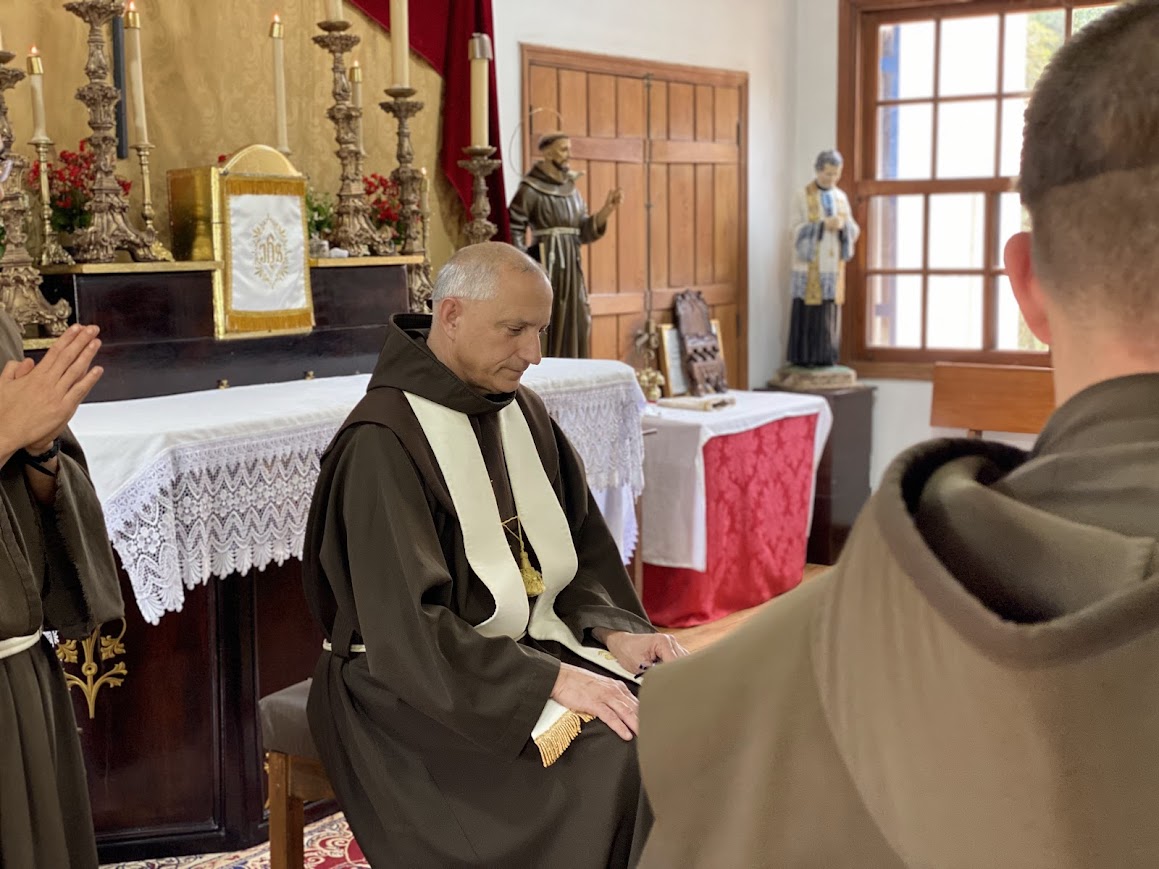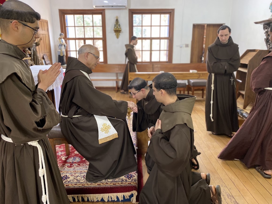 Ontem, 30 de setembro, nossa comunidade acolheu com grande alegria o Rev. Pe. Frei Francis Miller, O. F. M. Sub, nosso Superior Geral, que regressa ao Brasil para uma ocasião de particular importância: a Profissão de Votos Solenes do Rev. Pe. Frei Boaventura de Nossa Senhora Sede da Sabedoria.