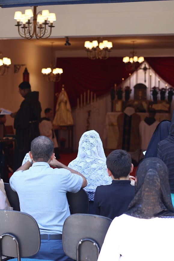 A celebração teve início por volta das 10h50, na Capela Pública do Convento de São Miguel e de Santo Antônio, em Itatinga/SP, dedicada à Virgem de Loreto. Fiéis vindos de diversas cidades — entre elas Botucatu, Bauru, São Paulo e outras localidades — reuniram-se para rezar o Santo Terço.