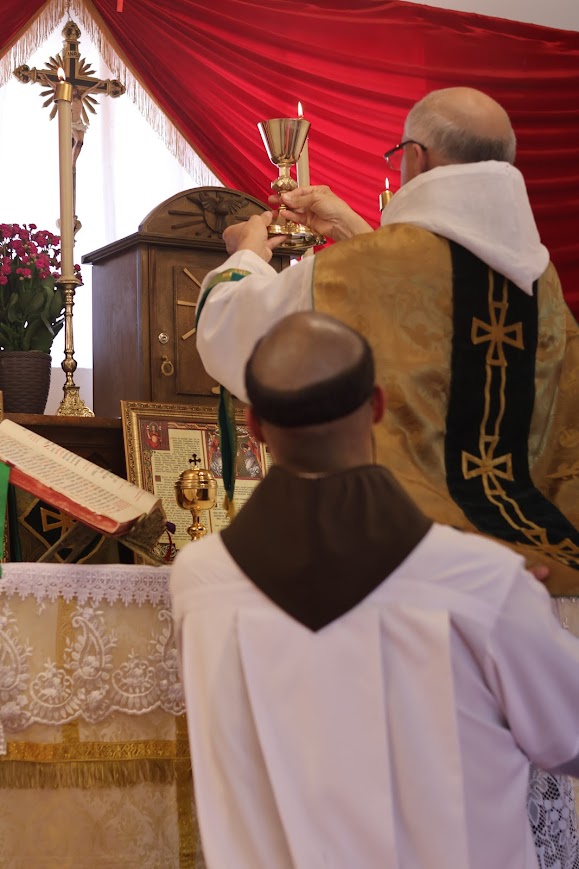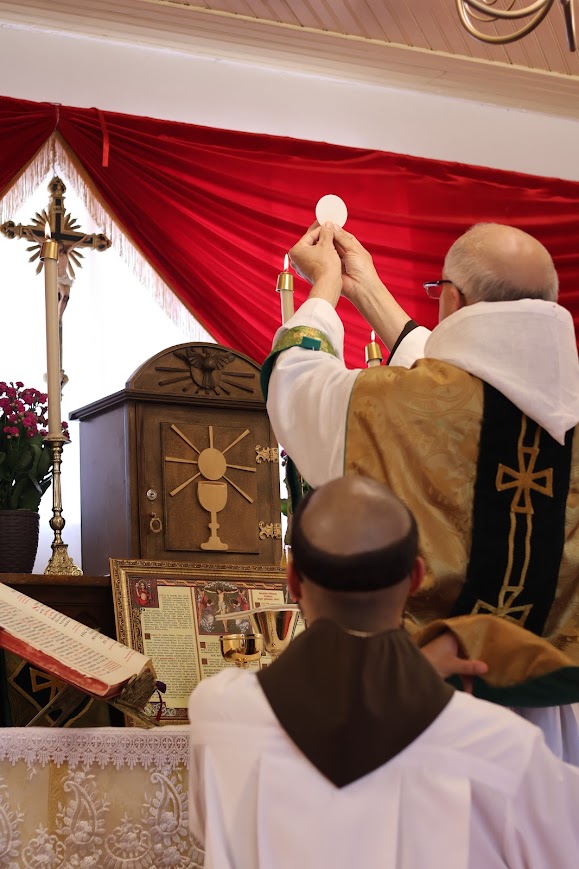 Às 11h30min, iniciou-se a Missa Cantada do XVII Domingo depois de Pentecostes, celebrada pelo Rev. Pe. Frei Francis Miller, Superior Geral. Durante a Santa Missa, logo após o canto do gradual, a celebração foi pausada para dar início ao solene rito de profissão.