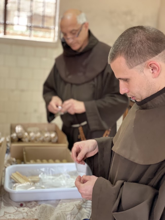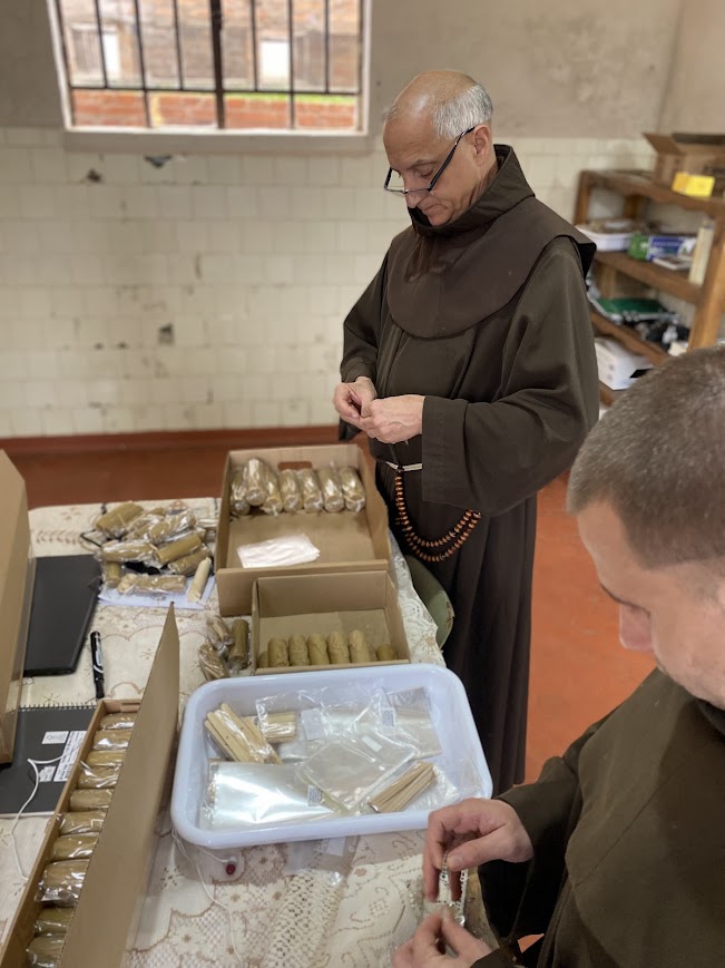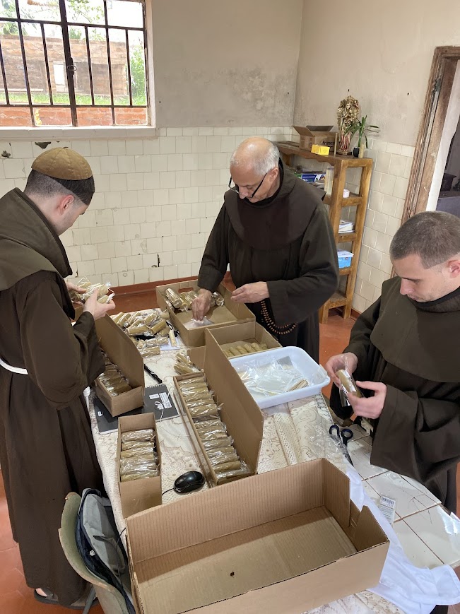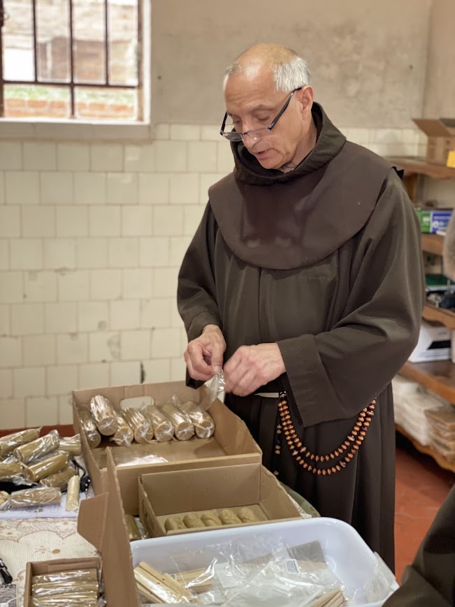 O Padre Geral, sempre zeloso pelo bem e pela subsistência do convento no Brasil, também levou consigo mais de duzentas velas LUX CHRISTI, da loja oficial de velas artesanais 100% cera de abelha, fruto do trabalho paciente e dedicado de nossos Religiosos. Até o Padre Geral ajudou a embalar as mais de duzentas velas — foi um grande trabalho, mas cheio de alegria e boa disposição! As velas serão vendidas nos Estados Unidos, e o valor arrecadado servirá para dar suporte às necessidades do nosso Convento.