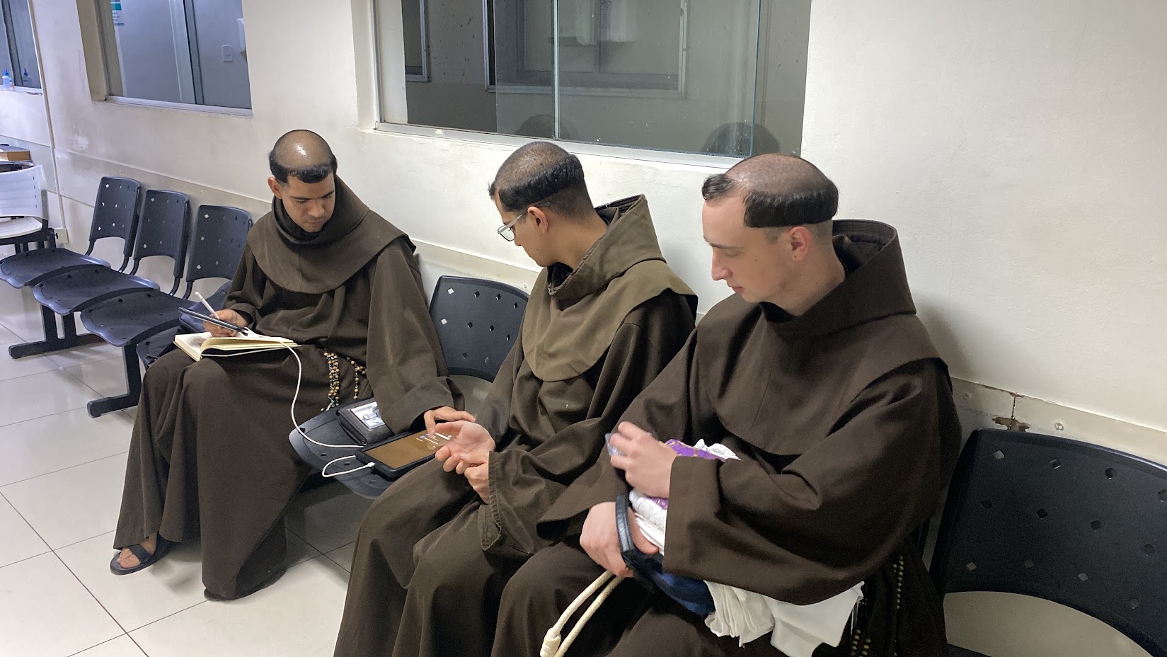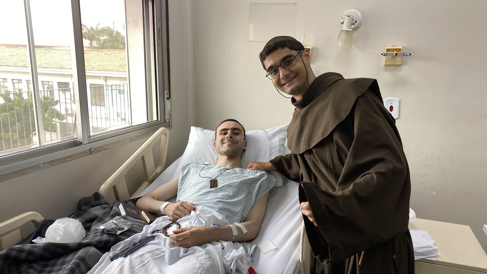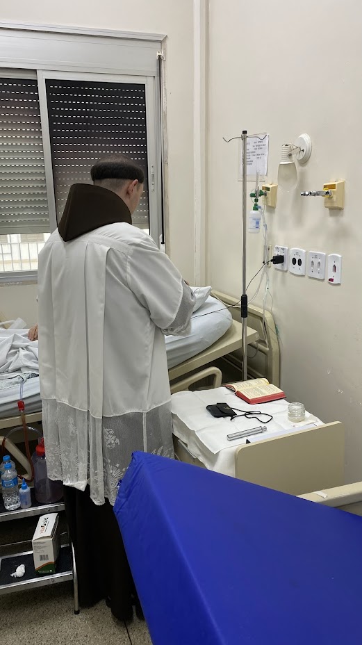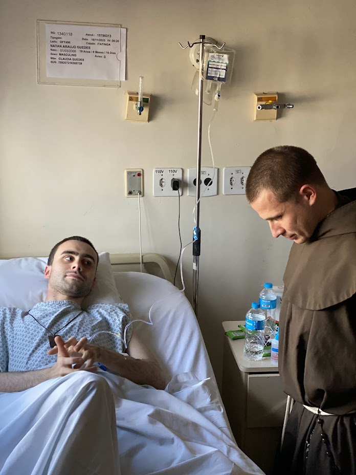 Acompanhado por Frei Serafim, Frei Conrado foi transferido de ambulância no último sábado. Após horas de espera, um médico conduziu Frei Serafim ao interior do pronto-socorro, onde encontrou Frei Conrado já submetido à colocação de um dreno torácico para retirada do líquido pleural. Ainda naquele mesmo dia (15/11), uma senhora, cuja mãe idosa estava desenganada pelos médicos, aproximou-se dos frades pedindo que fossem administrados os últimos sacramentos à sua mãe. Buscamos prontamente o Reverendo Padre Boaventura, que, com zelo pastoral, administrou os Santos Sacramentos àquela alma necessitada.