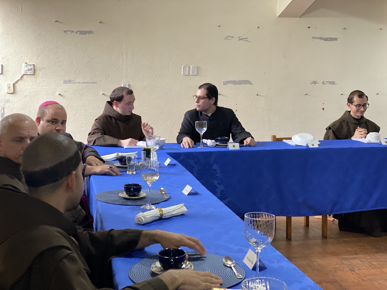 Ao chegarem ao Convento, os Reverendos Padres celebraram suas Santas Missas e, em seguida, participaram do almoço em comunidade. Foi bonito ver a alegria dos Irmãos ao reencontrar sacerdotes amigos e partilhar esses momentos fraternos, juntamente com o Senhor Bispo. Embora estejamos bastante ocupados com os preparativos para as cerimônias que se aproximam, todo o esforço é recompensado pelas graças que o Senhor tem concedido à nossa comunidade.
