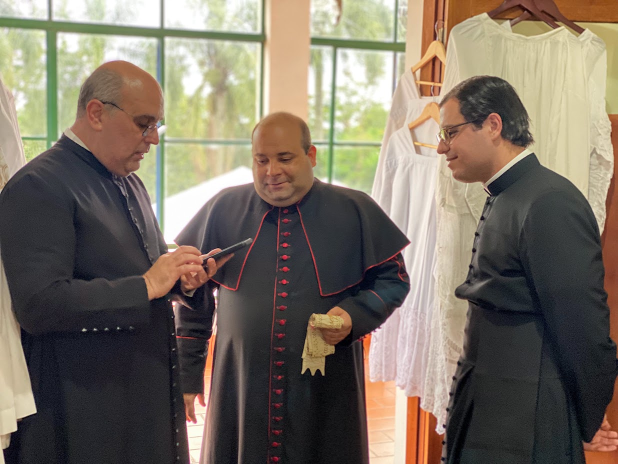 Caríssimos fiéis, hoje, dia 18 de dezembro de 2025, tivemos a alegria de receber em nosso Convento os Reverendos Padres Leonardo Holtz e Gabriel Spínola, que vieram por ocasião das Ordenações que em breve acontecerão entre nós, pelas mãos de Sua Excelência Reverendíssima Dom Rodrigo da Silva.